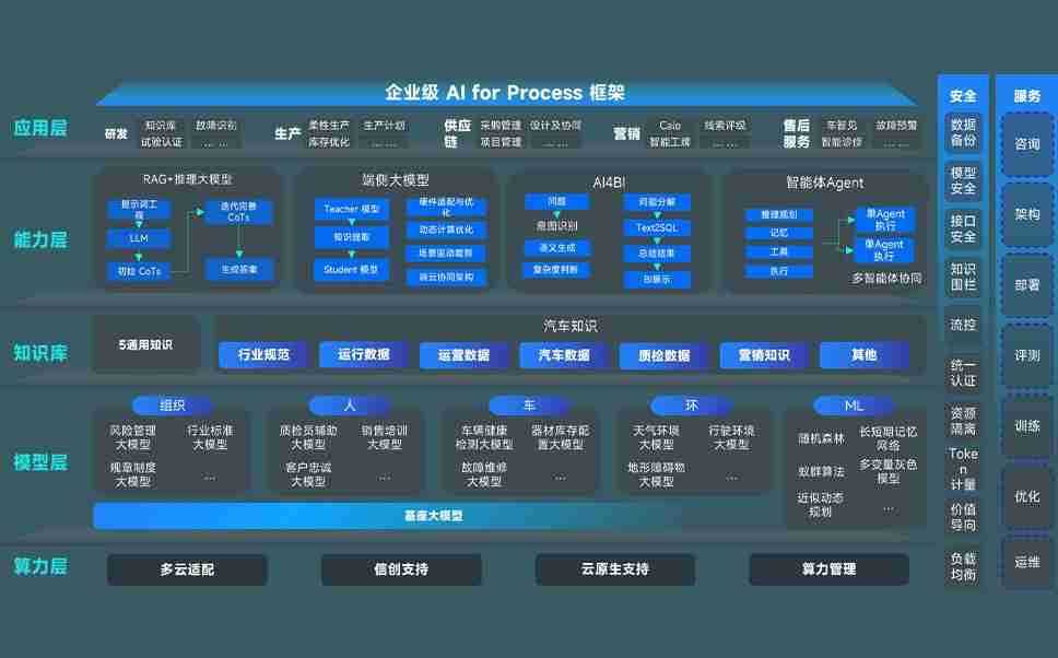 端到端的一站式AI工作空间深度融合了从企业战略规划到日常经营的全流程业务板块,,,,定向解决车企内部领域多、、部门多、、、、链条长、、场景碎片化等难题,,,,支持车企快速构建以AI为核心的生产力写作体系,,,,实现任务执行与AI能力的无缝集成与交互